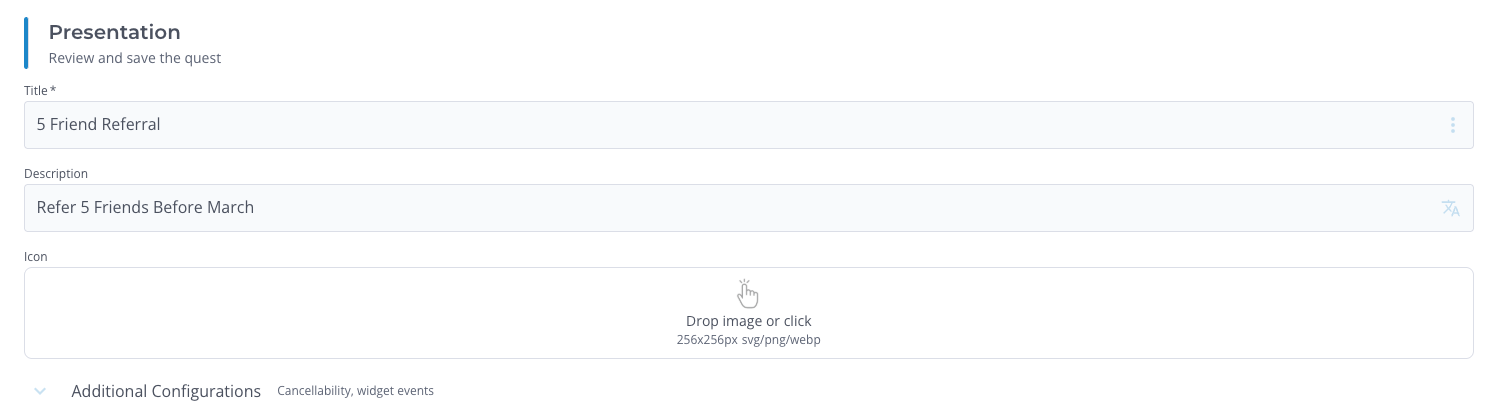 Set the title to Refer 5 Friends Before March and then upload an relevant icon.