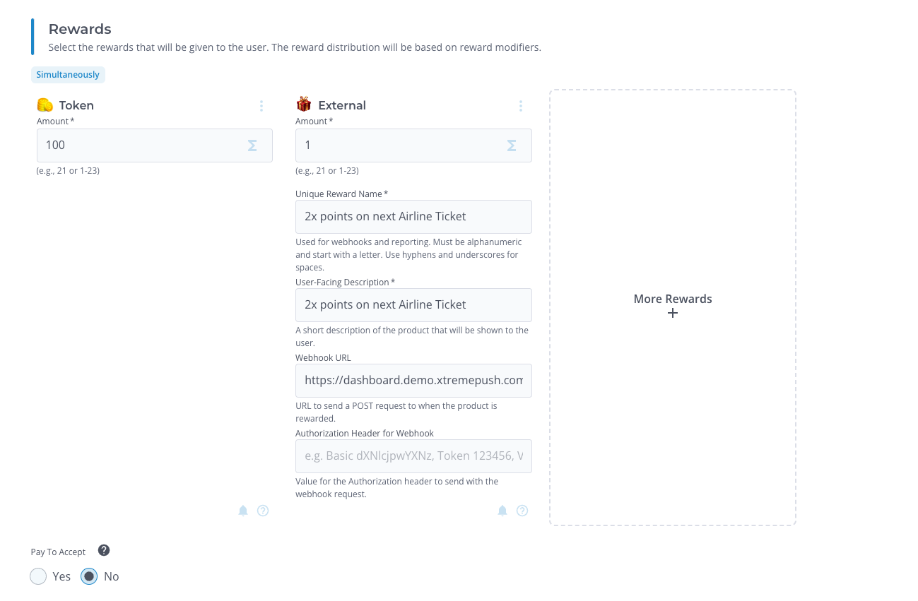 Add two rewards that users receive for completing the quest: